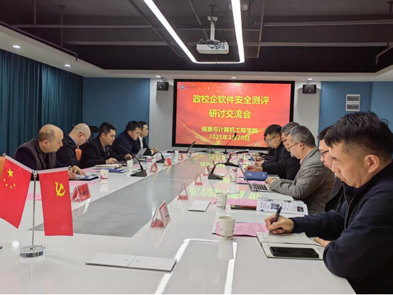 为深化政校企合作,提升软件安全测评技术能力,推动区域数字经济高质量发展,2025年3月20日,我院与市委网信办、市公安局、相关企业在天泉楼4楼会议室联合开展“政校企软件安全测评研讨交流会”,会议主要围绕软件安全技术攻关、软件测评、产学研协同等进行了深入探讨。萍乡市委网信办综合科科长黄灿、萍乡市公安局大数据实战中心负责人兰见春、萍乡市公安局网络安全保卫支队副支队长段君、萍乡市数字产业投资集团有限公司副总经理钟晓磊、广州掌动智能科技有限公司执行总裁罗剑芳、信息与计算机工程学院院长李希勇、副院长孙正广等出席会议,我院办公室主任彭新平、朱鹏博士、颜丽等参加会议,会议由李希勇主持。