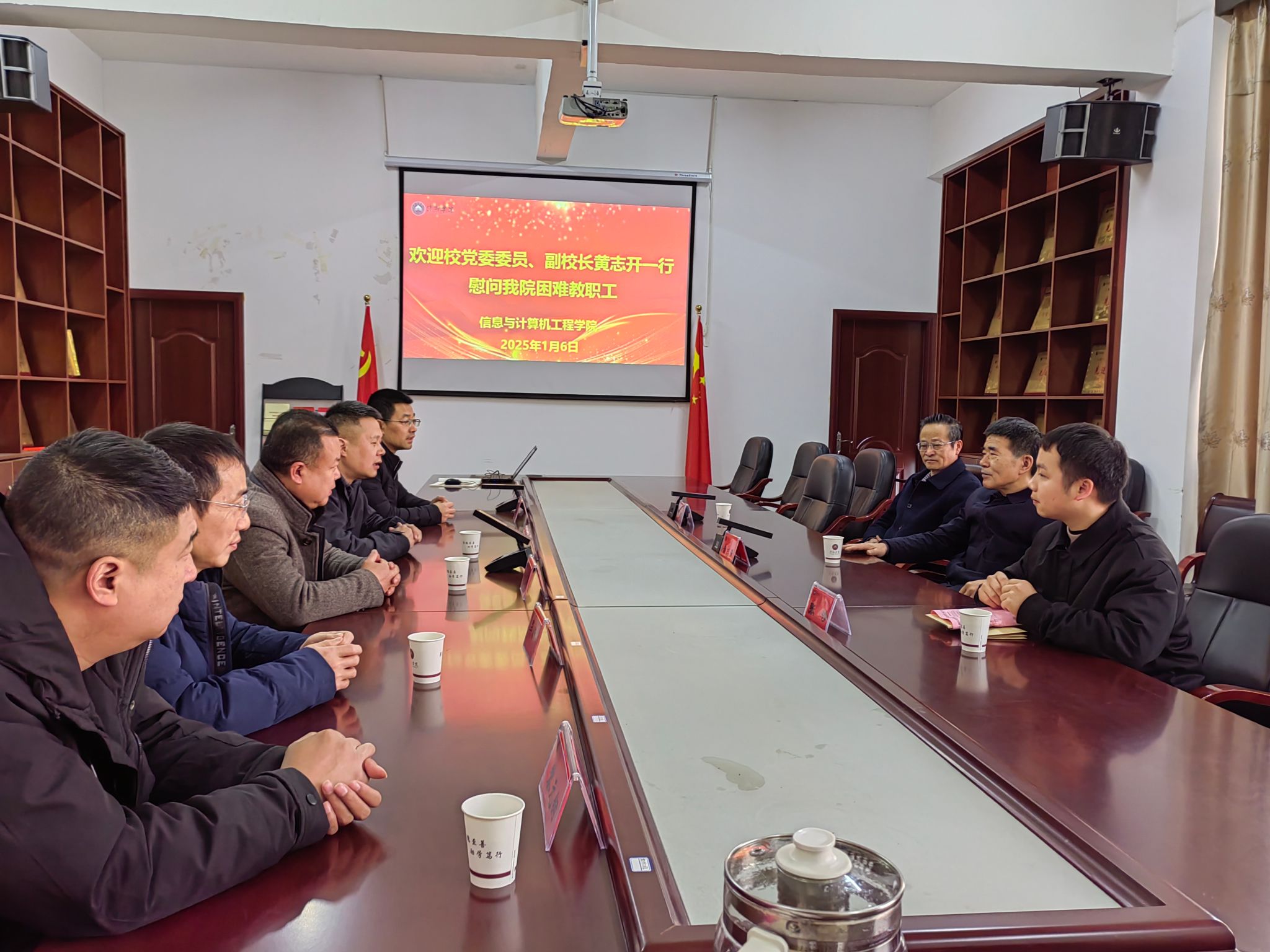 为大力弘扬党内关怀帮扶的优良传统,春节将至,1月6日,校党委委员、副校长黄志开到信息与计算机工程学院走访慰问生活困难教职工,代表学校党委送去关怀与温暖,并向大家致以新年的美好祝福,相关职能部门负责人参加慰问。