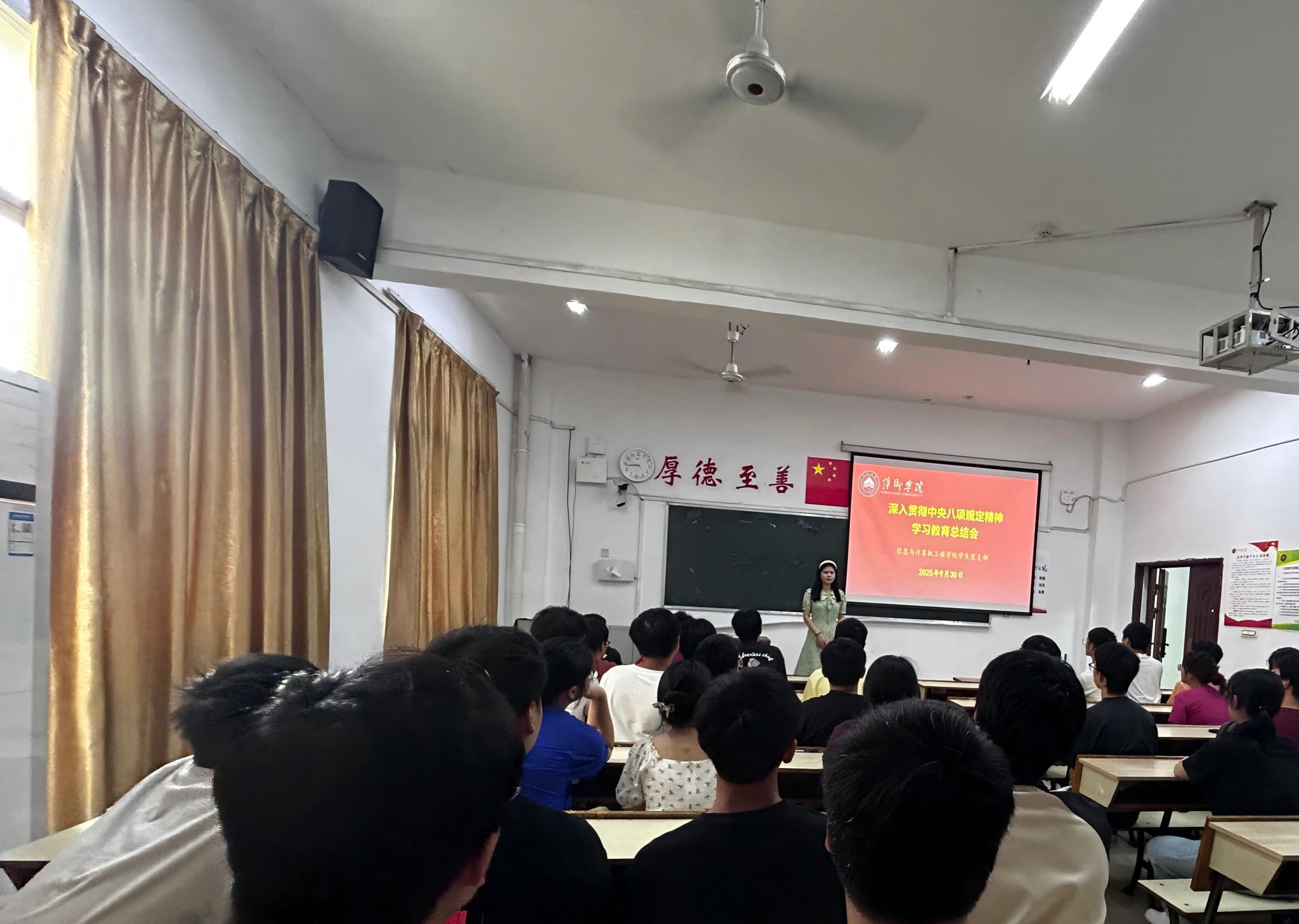 9月30日,信息与计算机工程学院学生党支部在2419召开深入贯彻中央八项规定精神学习教育总结大会。