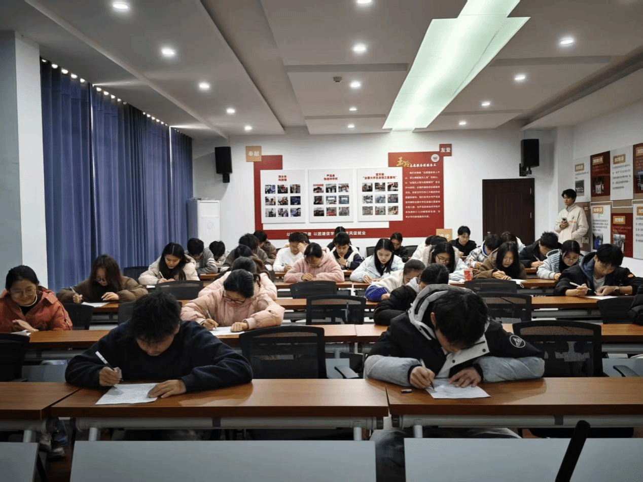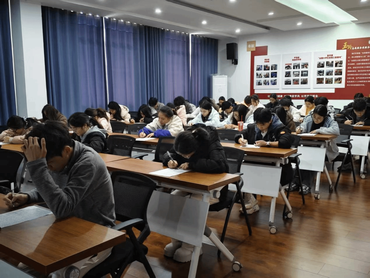 竞赛现场氛围庄重有序,学生党员与入党积极分子准备充分、精神昂扬,沉着作答、认真书写,充分展现出扎实的理论储备与对党的创新理论的深刻领悟。此次竞赛不仅是理论知识的同台比拼,更是理想信念的锤炼升华。党支部以赛促学、以赛促悟,旨在进一步激发学子学习党的二十届四中全会精神的热情,强化思想引领,提升政治素养与党性修养。
