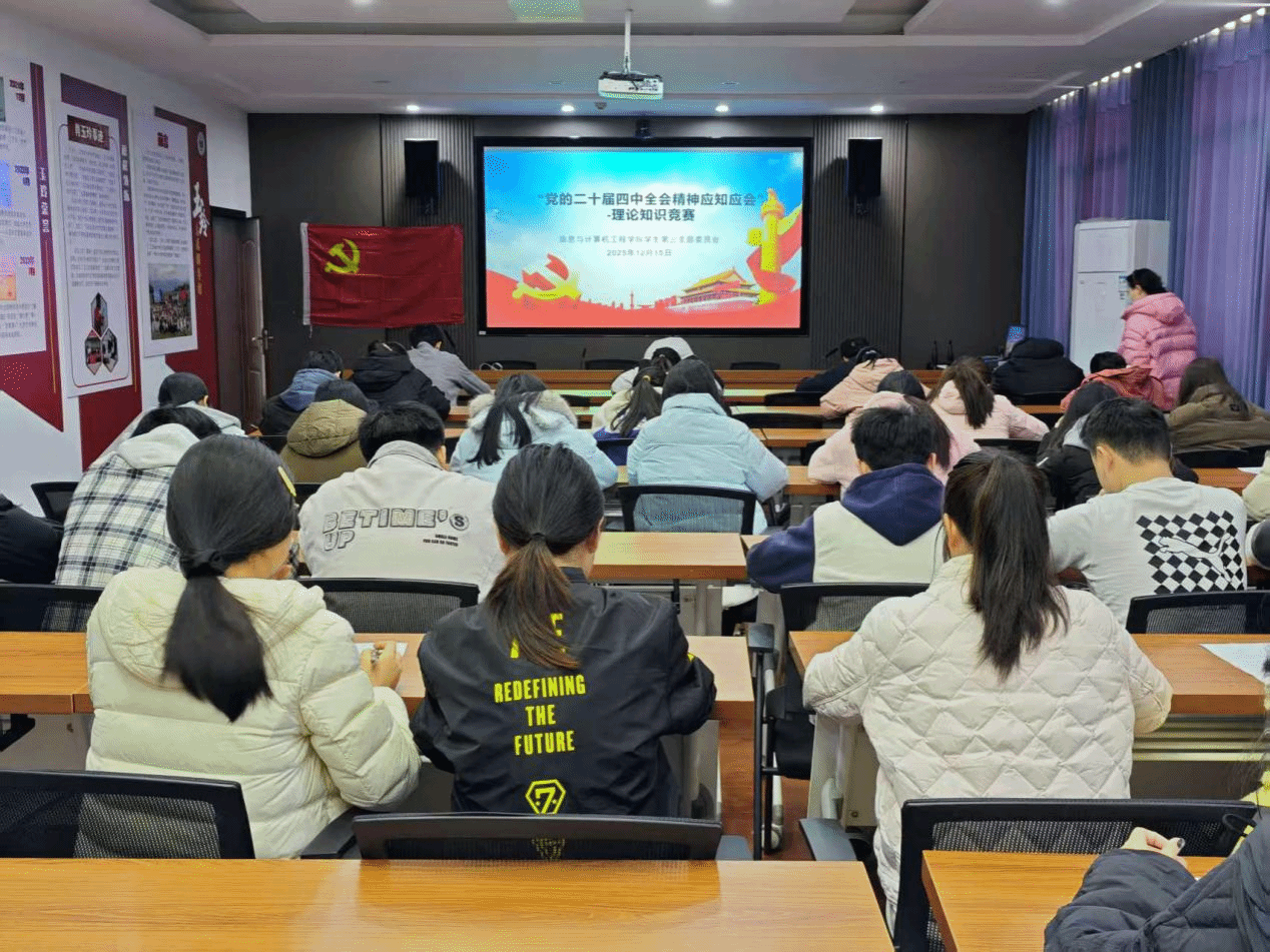 为了深入推动党的二十届四中全会精神“进教材、进课堂、进头脑”,进一步加强学生党员同志和入党积极分子的理论学习、提高自身素质及增强党性修养。信息与计算机工程学院学生第三党支部于12月15日中午12:50在鼎新楼2405教室举办“党的二十届四中全会精神应知应会”理论知识竞赛。