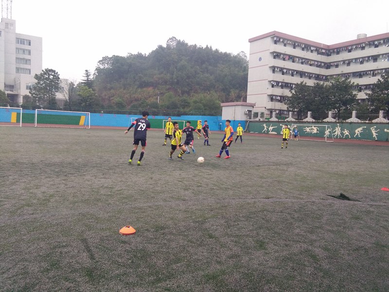 2017年11月17日12时30分,萍乡学院新生杯足球赛半决赛于学校田径场举行,此次比赛由信计学院对战商学院。尽管天空中飘着细雨,足球队员们还是早早的来到了田径场做热身运动,同学们也都积极来到田径场为他们呐喊助威。