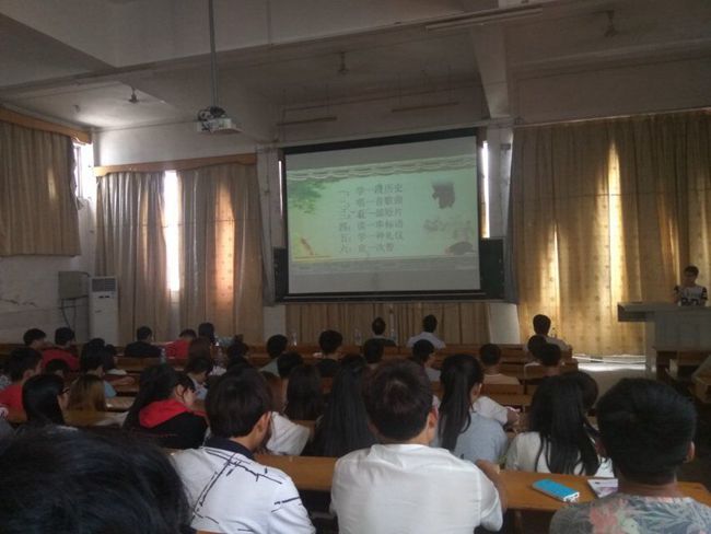 本次道德讲堂活动主要分为六个流程:学一段历史,唱一首歌曲,看一部短片,读一串标语,学一种礼仪,宣一次誓。活动中主讲人为大家简介五四运动,诠释了五四运动的意义,以问答的互动方式为大家引出了五四精神的核心:爱国、进步、民主、科学。主讲人表示我们应将“五四精神”牢记于心,并努力去践行五四精神。在大家热情正被五四精神的蕴意所点燃时,主讲人提出全体人员起立齐唱共青团团歌,热情激昂的歌声将会场气氛再次推向高潮!弘扬五四精神,从自身做起。主讲人由“五四精神从自身做起”引出交通安全话题,表示作为当代青年学生弘扬五四精神应联系实际,倡议大家遵守交通安全,争当文明交通的践行者,还通过精心准备的交通短片与标语进一步引导大家。