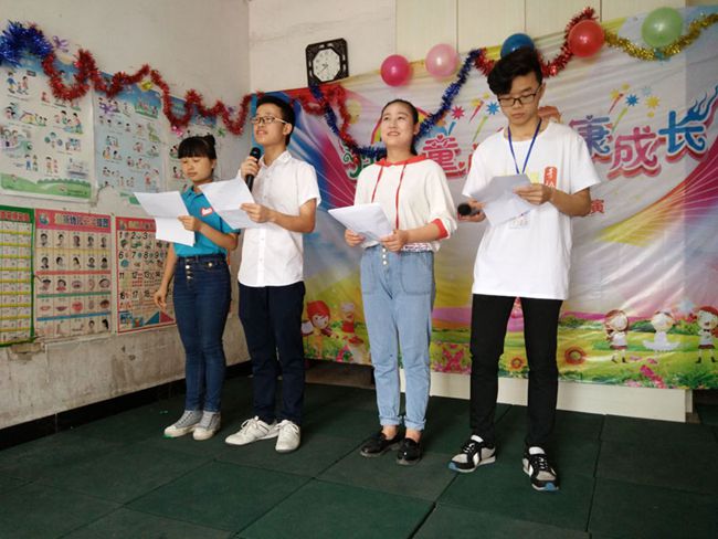 活动在爱心园一楼进行,爱心园的老师们、孩子们以及孩子的父母都集聚在小院里,共同期待着孩子们、老师们以及我们青年志愿者们的表演。我们来自义工团和两个学院青协的4位主持人,为活动拉开了序幕。第一个节目是由爱心园全体老师老师为孩子们带来的集体舞蹈《彩红的预定》,欢快的舞姿为我们营造了一种轻松的氛围,让我们的小朋友没有那么最开始的紧张不安。第二个节目是由我们可爱的 小朋友带来的集体舞《就是爱你》,我们的小朋友们在老师的引舞下,不再害羞,全身心地投入到舞蹈当中,他们小小的身子舞动着,仿佛带来了希望的气息。第三个节目是由我们学院青协成员为孩子们带去的手语《和你一样》,是的,无论我们是谁,有着怎样的条件,我们都是一样的,我们都是一样的坚强,一样的全力以赴追逐自己的梦想。我们希望小朋友们能够满怀着对美好未来的憧憬,为自己的梦想奋斗。下一个节目是由爱心园的小朋友带来的舞蹈《我的好妈妈》,孩子们的父母都在现场,看着孩子们欢快的舞姿,有的不禁潸然泪下,看到孩子们在爱心园的成长,爸妈们很是欣慰。接下来的一个就热闹了,是我们爱心园的全体师生带来的舞蹈《小白兔体操》,这个舞蹈具有极大的影响力,不仅使得全场热闹沸腾,更是将我们志愿者们带回了童年,让我们仿佛回到了小时候,和大家一起翩然起舞。好玩有趣的节目还有很多很多,我们老师,小朋友,义工团还有我们的志愿者们精心准备了很多很多节目,累计起来多达17个,后面还有一场我们小朋友的环保时装秀,漂亮精致的衣服全部是由爱心园全体老师精心裁制的,我们都为之感到惊叹。时尚的风格,精细的布局,这些美丽的衣服让我们原本就很可爱的小朋友们变得更加有个性有特色。活动的最后是以游戏环节结束的,游戏的内容是:小朋友用嘴巴运吸管,在规定时间内看谁运的吸管数目多,谁就获胜。紧接着是我们的颁奖环节,最后主持人宣布活动圆满结束,大家一起合影留念。