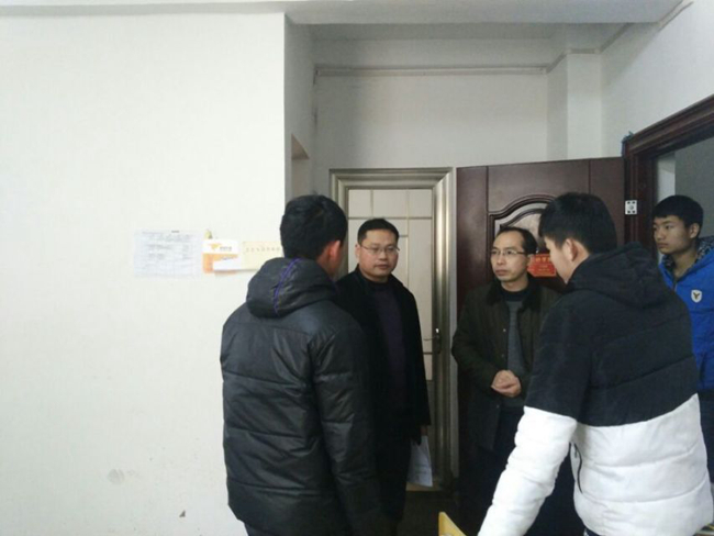 在寝室的走访过程中,领导老师十分关注同学们的寝室卫生情况,在这个疾病多发的春季,要求同学们务必要搞好寝室卫生,注意个人卫生,坚持锻炼,预防疾病;并要求每个寝室每天要进行消毒。领导老师在走访寝室的过程中,对寝室卫生表现较好的予以了表扬,强调宿舍是大家学习与生活的重要场所,安全与同学们息息相关,希望大家要牢固树立“安全第一”的思想,要求同学们严格遵守学校有关规定,在宿舍里养成良好的生活习惯。