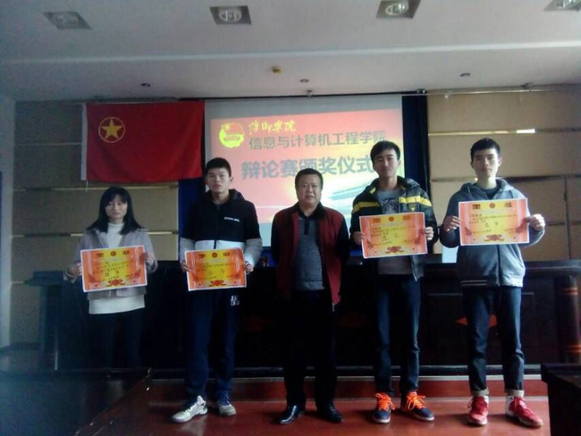 会上,团总支书记危远峰宣读本届辩论赛的季、亚、冠军班级,季军:16软件1班与16数媒班;亚军:16信管班;冠军:16软件2班。由各班代表上台领奖。危老师表示此届辩论赛充分展示了信计学院当代大学生良好的精神风貌,并勉励受表彰的班级要珍惜荣誉,不断进取,再创辉煌;同时也表达了学院领导与老师对同学们的深厚情怀及殷切希望!