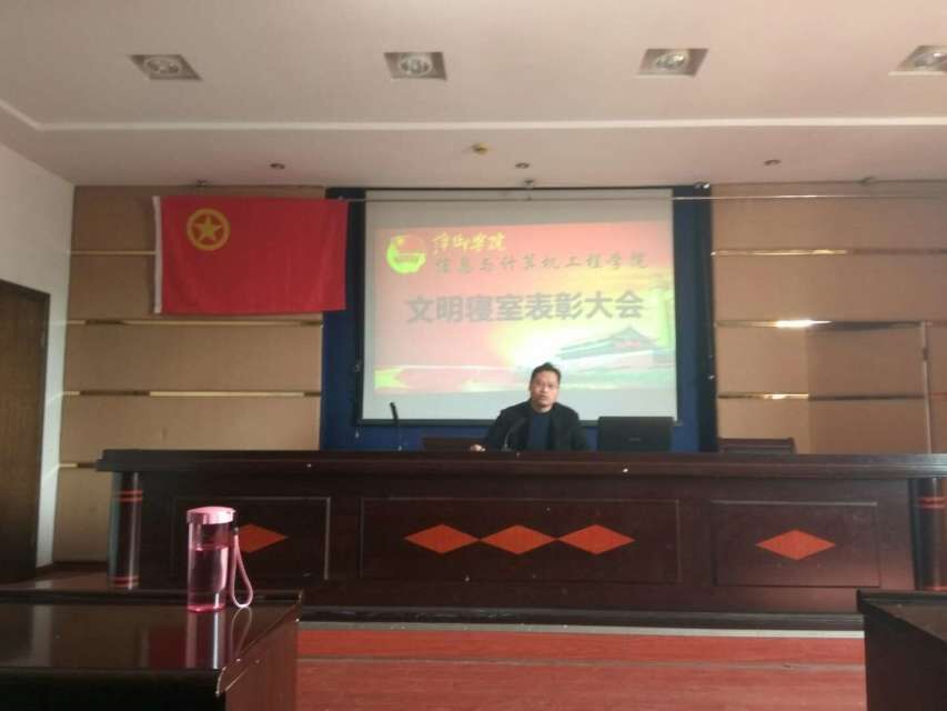 为了鼓励文明寝风的建设、优秀寝室文化的培养,信息与计算机工程学院于2月24日在鼎新楼2405会议室召开了文明寝室表彰大会。党总支副书记彭新平、信息与计算机工程学院团总支学生分会主席丁要男及信息与计算机工程学院全体寝室负责人出席了本次会议,本次会议由学生分会宿管部部长张立军主持。