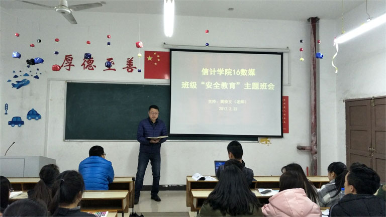 2017年2月22日(星期三)晚,信计学院16数媒班全体同学在鼎新楼2507教室召开2016—2017学年第2学期的新学期首次“安全教育”主题学习班会,班会活动由班主任黄检文老师主持。