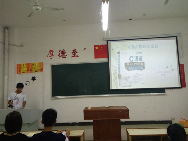 网络部与软件部,为本次交流会提供了很大助力。这两大部门主讲员仔细讲解有关计算机的一些基础性计算机的构成,以及C语言的编程的一些简单知识,并涉及到计算机互联网的一些利弊等问题。讲解员的讲解虽然有点笨拙,但是大体表现他们很认真准备此次交流会。最后,会长张斌仔细认真总结讲解员的一些基础知识,并将其延伸拓展,通俗易懂的举例让在座的成员都能清楚明白,并提出通过自学才能在计算机的道路越走越远。
