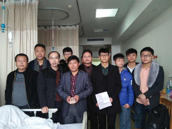 11月23日上午,学工处副处长丁勇,信计学院党总支书记肖俊宇,党总支副书记彭新平,团总支书记危远峰以及信计学院团总支学生分会代表丁要男、王鹏志,信计学院青年志愿者协会会长杨鑫,计算计协会会长张斌等学生代表一行前往萍乡市人民医院探望住院治疗的贺金梅同学。