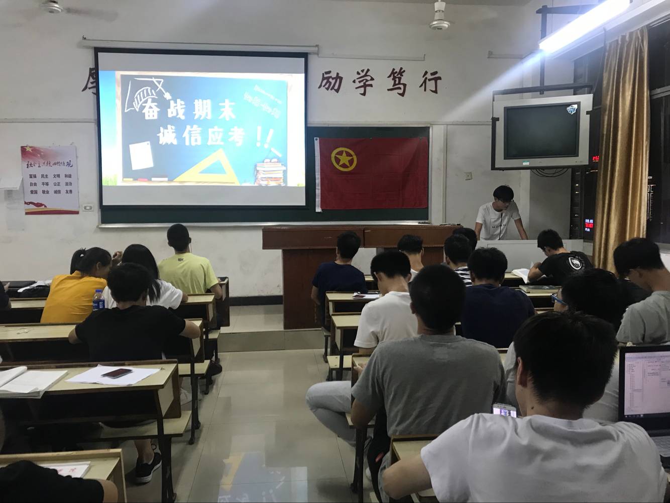 期末考试即将来临,为了圆满完成此次考试,结合我校实施“我是成年人”大学生教育活动方案的契机,引领大学生积极践行社会主义核心价值观,促进大学生身心健康。2018年6月21日,17软件工程2班在2614开展了有关拒绝网络赌博的主题班会,该班会是由学习委员苏文祥主持。