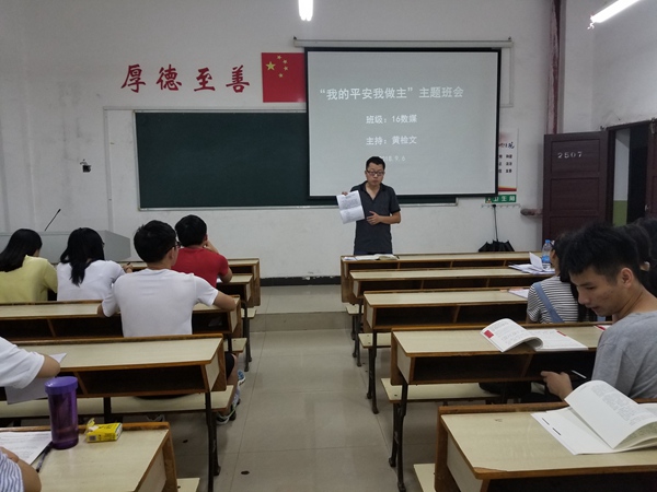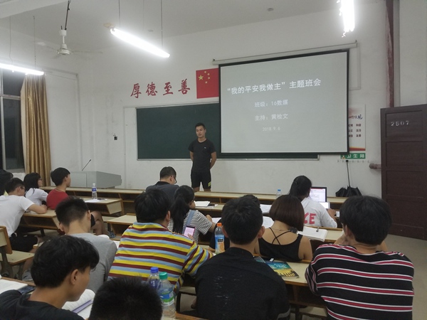 2018年9月6日晚19:30,根据学校和信计学院的安全主题工作文件安排,16数媒班级在2507教室召开“我的平安我做主”主题班会。班级全体同学参加,班会由班主任黄检文老师主持。