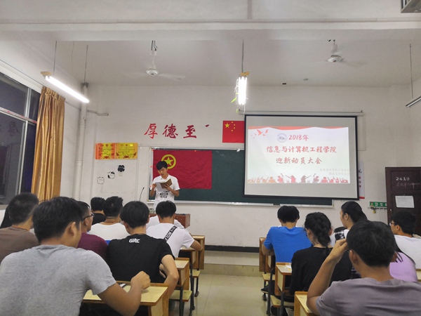 为确保迎新工作安全有序进行,2018年9月6日19时30分,信息与计算机工程学院于鼎新楼2419召开2018级迎新动员大会,出席本次会议的有信息与计算机工程学院彭新平副教授、信息与计算机工程学院团总支学生分会主席叶云峰、团总支学生分会副主席、青年志愿者协会会长刘斐,会议由叶云峰主持,信息与计算机工程学院团总支学生分会全体成员以及青年志愿者协会全体成员参加本次会议。