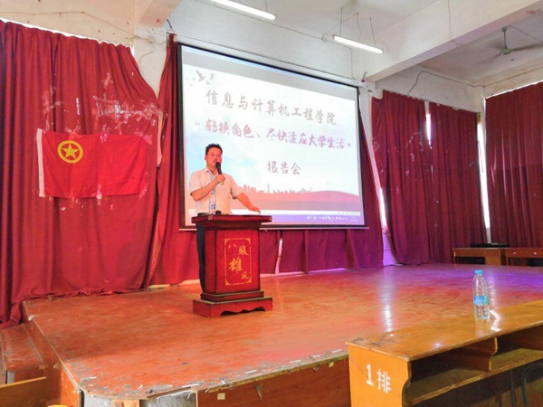 为引导18级新生树立正确的学习观,恋爱观,交际观,确立奋斗目标并规划好大学生活,2018年9月10日上午8点30分,信息与计算机工程学院在跬步楼1115教室召开了“转变角色,尽快适应大学生活”报告会,本次报告会由彭新平副教授主持。信息与计算机工程学院院长周锦春教授,副院长李希勇教授、辅导员肖咪咪、黎元钢老师以及18级各班班主任出席了本次报告会,18级全体同学参加了本次报告会。