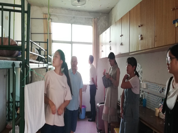在结束了繁杂的报名流程时候,新生们纷纷前往宿舍进行整理,正式开始了大学的新生活。我院领导的工作仍然没有停止,第一天报道结束之后,彭新平副教授带领学院的各领导视察了我院的新生宿舍。来到新生宿舍之后,领导们首先视察了住宿环境及宿舍各种设备是否完好以确保新生住的安心舒适。