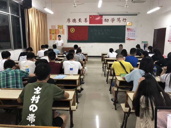 会议开始,温佳诚首先从拒绝校园贷讲起,他提到面临开学很多不法分子通过网络诈骗的手段向学生进行电信诈骗,校园贷就是其中一种。希望每个同学都能提高警惕,拒绝校园贷。接下来,温佳诚还从防盗防骗、预防溺水、交通安全、消防安全、食品安全、用电安全六个方面给同学们讲述了校园安全的重要性。同时还结合自己的暑假经历告诉同学们要如何增强自己的安全防范意识