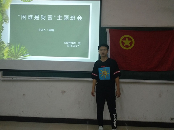 2018年9月20日,17软件技术1班开展了有关“困难是财富”的主题班会,班会由团支书陈响主持。
