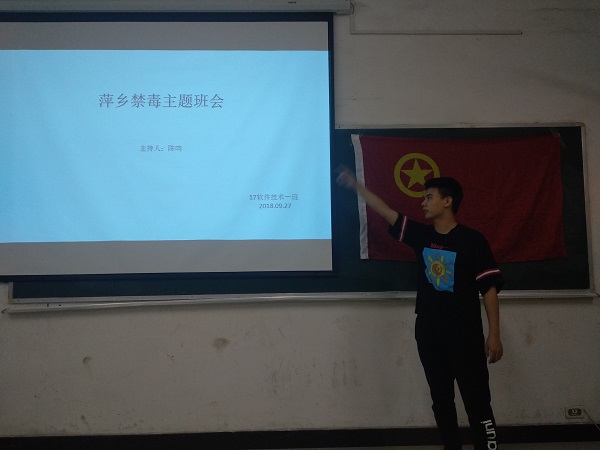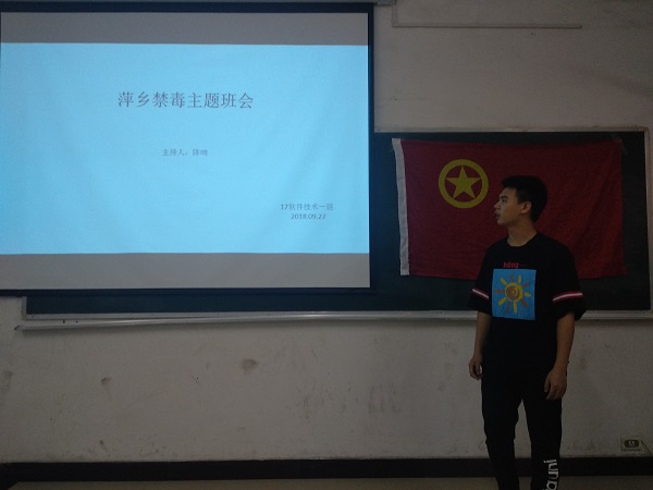 2018年10月20日,17软件技术1班开展了有关“萍乡禁毒”的主题班会,班会由团支书陈响主持。