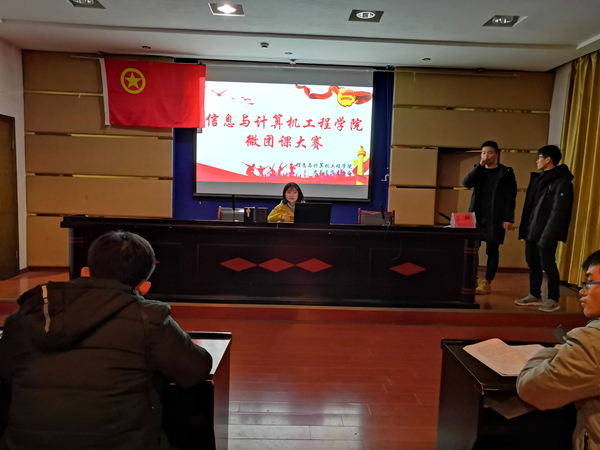 为深入学习贯彻习近平新时代中国特色社会主义思想和十九大精神,丰富团课教学内容,创新团课教学形式,信息与计算机工程学院于2018年12月9日晚在鼎新楼2403开展了2018年“微团课”大赛,此次比赛共有八名选手参加。