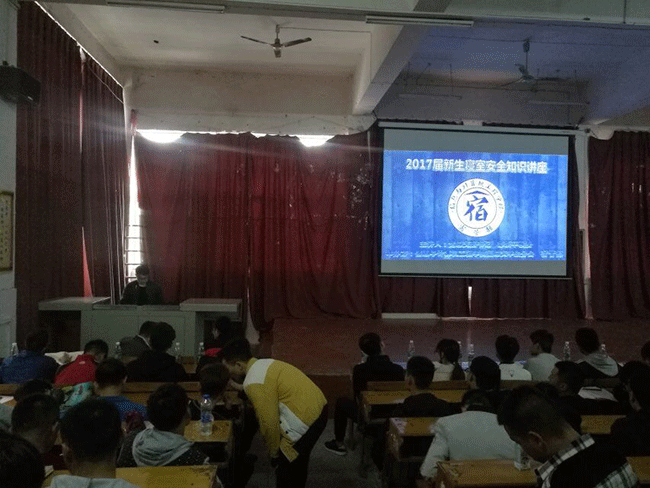 彭副教授首先强调了安全的重要性,后细分安全问题为人身、财产、消防、生活、交通五点,逐一讲授。彭副教授通过一个个深刻的例子及一些生动的图片对寝室用电安全问题、财产安全问题、火灾问题、交通安全问题及女生自我保护问题等进行了形象生动的讲解,并提出了相应的解决方法。其生动而又幽默的讲解让同学们更深刻的体会到安全的重要性。接着,彭副教授还补充了萍乡学院寝室管理的奖惩制度以及评分细则,并提醒同学们不可随意更换床位,避免给宿管部成员们工作带来困难。