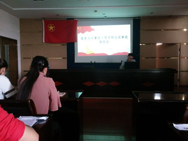 2017年5月16日中午12时,信息与计算机工程学院先进事迹报告会在鼎新楼2405会议室成功召开。信计学院党总支副书记彭新平老师出席本次会议,信计学院团总支学生分会全体成员参加了本次会议。本次会议由信计学院团总支学生会主席丁要男主持。