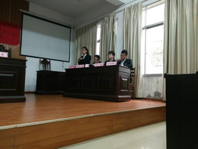为增进二级学院之间友谊,提高系部凝聚力!政法学院与信计学院于4月10日在模拟法庭开展辩论赛友谊赛。本场辩论赛的主持人是康佳,莅临本场辩论赛的嘉宾有政法学院团总支书记罗燕妮老师、凌焰老师、政法学院团总支副书记黄彦润、政法学院学生分会主席段荣浩,信计学院团总支副书记王鹏志、信计学院团总支学生分会主席丁要男、副主席翁梦倩、学习部部长杨柳,以及政法学院学生代表与信计学院学生代表也观看了本场辩论赛!