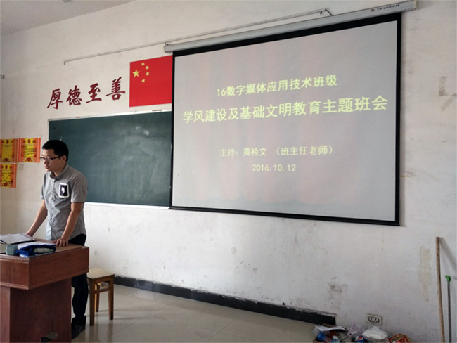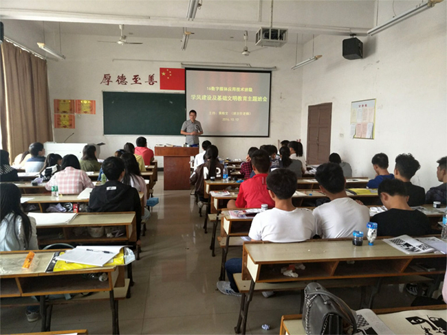 按照学校和信计学院关于学风建设和基础文明教育工作要求和安排,2016年10月12日,16级数媒班全体同学在鼎新楼2426教室召开了“学风建设和基础文明教育”主题班会,班会由班主任黄检文老师主持。