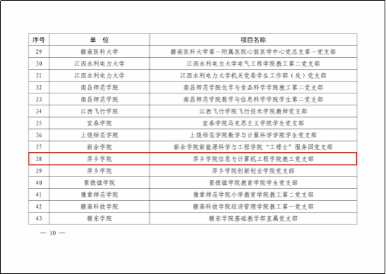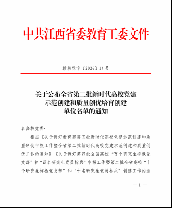 近日,中共江西省委教育工作委员会公布了第二批全省党建“双创”工作培育创建单位名单。信息与计算机工程学院教工党支部凭借扎实的党建基础和突出的工作成效,成功入选“全省党建工作样板支部”培育创建单位。这一重要成果标志着我院基层党建工作迈上新台阶,也为学院党建工作高质量发展注入了新动能。