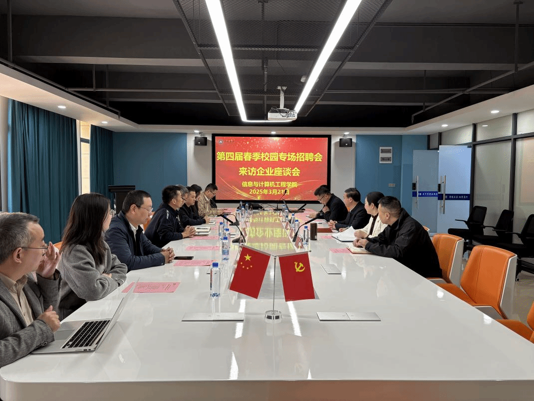 上午8:30,招聘会正式拉开帷幕。学院领导与各企业负责人在天泉楼四楼407会议室进行了座谈。会上,校党委委员、副校长陈永国代表学校致辞,对各位企业嘉宾的到来表示热烈欢迎,并介绍了学校的发展历程、专业设置及人才培养成果。双方就校企合作、人才培养等议题进行了深入交流。