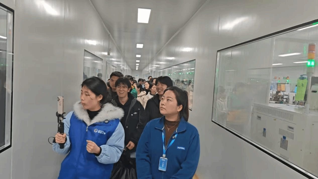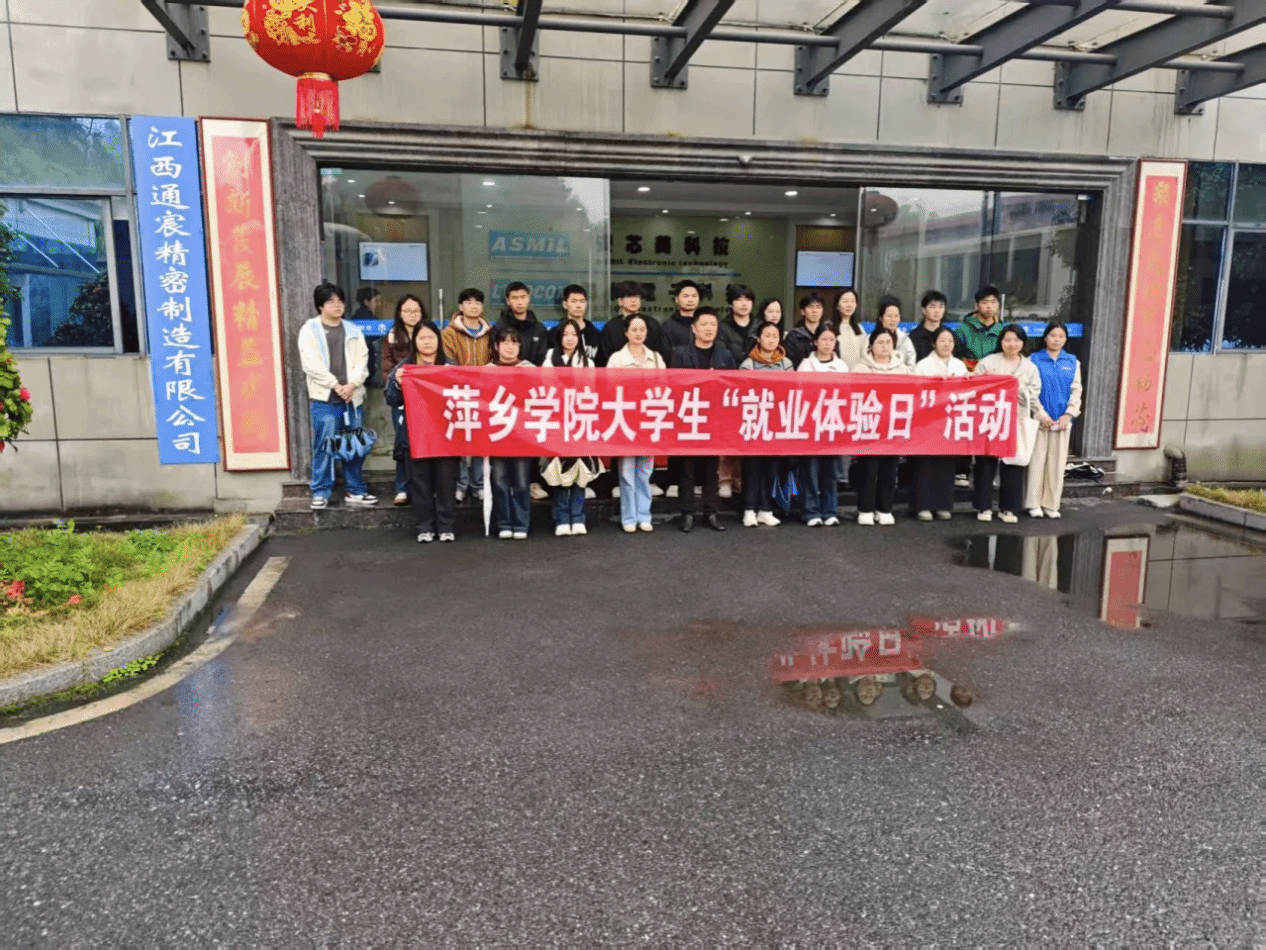 活动第一站,师生一行抵达江西安芯美科技有限公司。作为集半导体分立器件芯片设计制造、封装测试于一体的高新技术企业,工作人员带领学生有序参观生产车间,详细讲解半导体产品生产流程、技术优势及应用领域,让学生直观感受现代化生产的严谨与高效。参观结束后,双方开展座谈交流,企业负责人介绍岗位需求与发展前景,解答学生关于专业适配、技能要求等疑问,为学生职业规划提供针对性指导。